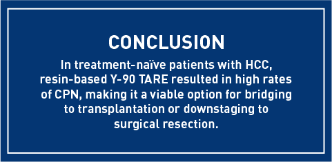 Caution: Federal (USA) law restricts this device to sale by or on the order of a physician Indications for Use: SIR-Spheres® Y-90 resin microspheres are indicated for the local tumor control of unresectable hepatocellular carcinoma (HCC) in patients with no macrovascular invasion, Child Pugh-A cirrhosis, well-compensated liver function, and good performance status. They are also indicated for the treatment of unresectable metastatic liver tumors from primary colorectal cancer with adjuvant intra-hepatic artery chemotherapy (IHAC) of FUDR (Floxuridine). Side Effects: Common side effects are fever, transient decrease of hemoglobin, mild to moderate abnormality of liver function tests, abdominal pain, nausea, vomiting, and diarrhea. Potential serious effects due to exposure to high radiation include acute pancreatitis, radiation pneumonitis, acute gastritis, acute cholecystitis and radioembolization induced liver disease (REILD). Consult the Instructions for Use for a complete listing of indications, contraindications, side effects, warnings, and precautions.