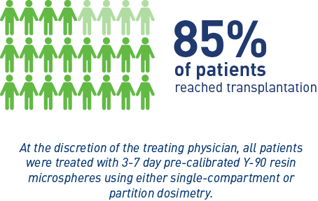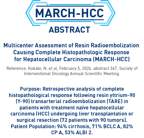 Caution: Federal (USA) law restricts this device to sale by or on the order of a physician Indications for Use: SIR-Spheres® Y-90 resin microspheres are indicated for the local tumor control of unresectable hepatocellular carcinoma (HCC) in patients with no macrovascular invasion, Child Pugh-A cirrhosis, well-compensated liver function, and good performance status. They are also indicated for the treatment of unresectable metastatic liver tumors from primary colorectal cancer with adjuvant intra-hepatic artery chemotherapy (IHAC) of FUDR (Floxuridine). Side Effects: Common side effects are fever, transient decrease of hemoglobin, mild to moderate abnormality of liver function tests, abdominal pain, nausea, vomiting, and diarrhea. Potential serious effects due to exposure to high radiation include acute pancreatitis, radiation pneumonitis, acute gastritis, acute cholecystitis and radioembolization induced liver disease (REILD). Consult the Instructions for Use for a complete listing of indications, contraindications, side effects, warnings, and precautions.